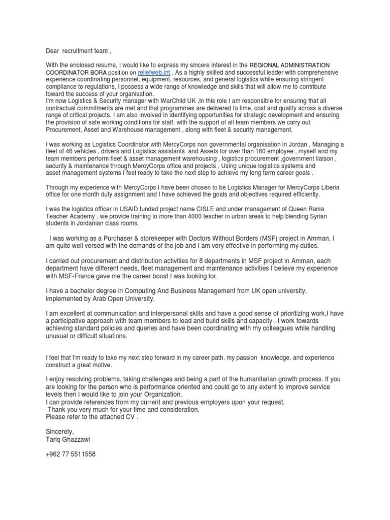 Cover Letter Tariq Ghazzawi Logistics Business Free 30 Day